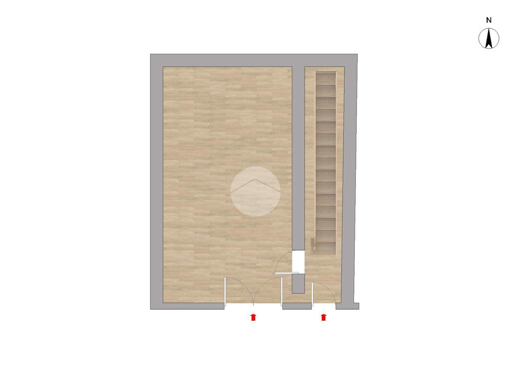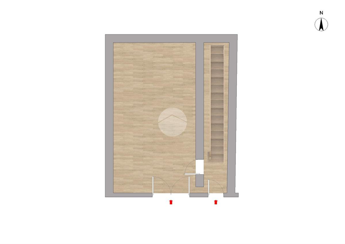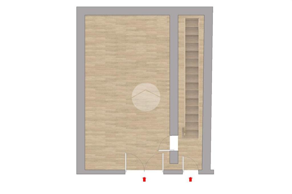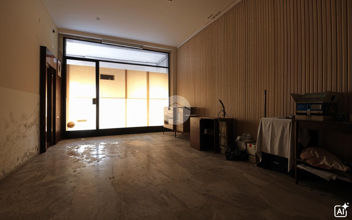 L'ingresso è caratterizzato da un androne che divide gli ambienti: a sinistra possiamo trovare un negozio con vetrina ed e il vano sottoscala utile come ripostiglio.