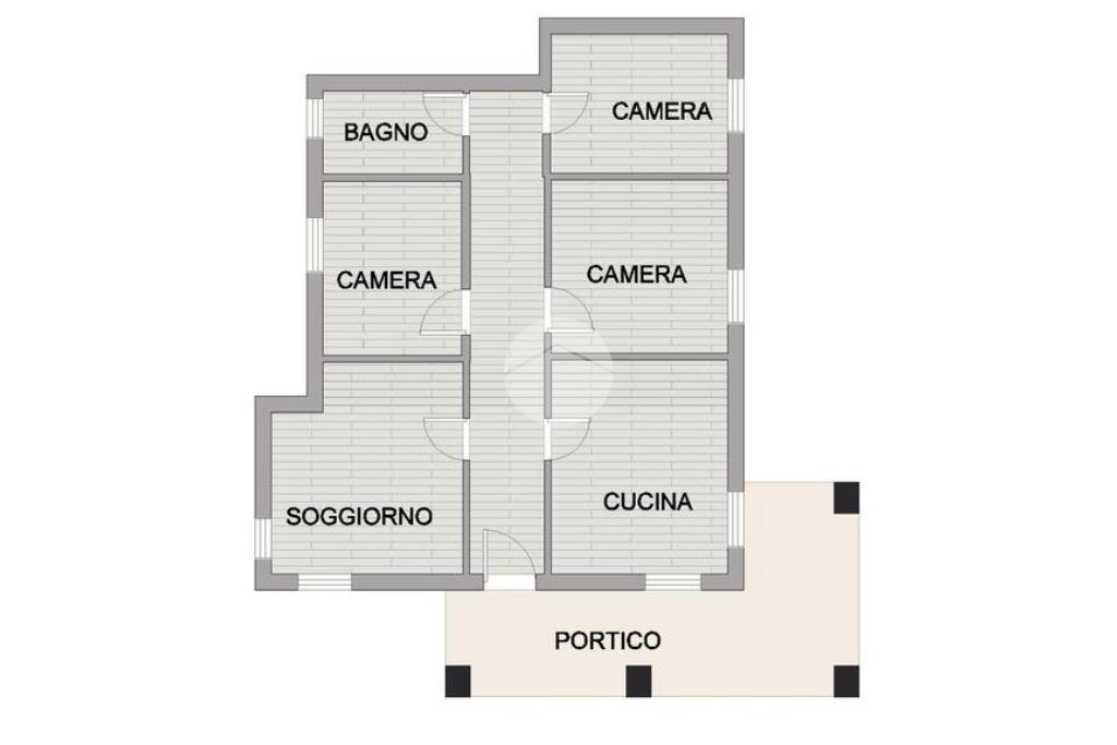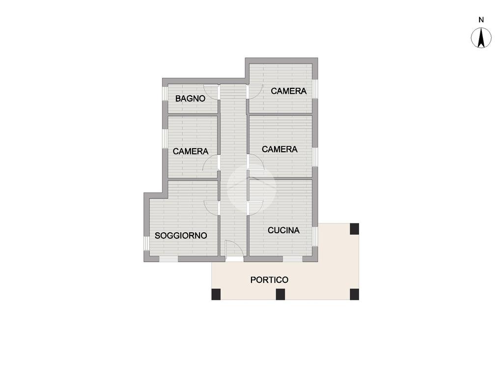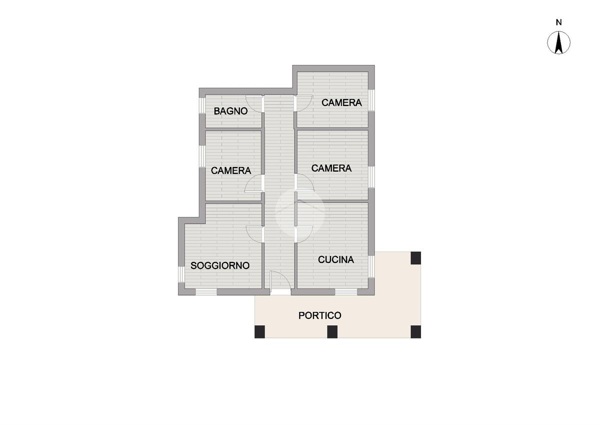 L'abitazione si apre su un accogliente portico che conduce all'ingresso principale dove si sviluppa la zona giorno composta da soggiorno e ampia cucina separata abitabile.